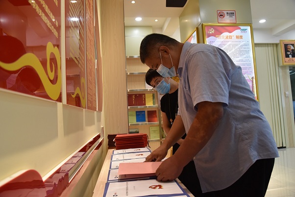 指導(dǎo)組一行現(xiàn)場查閱相關(guān)材料。吳思敏