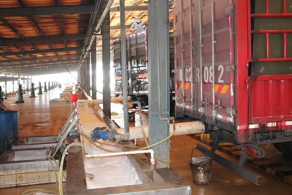 膠水車在金聯(lián)橡膠加工分公司卸膠水。簡日明