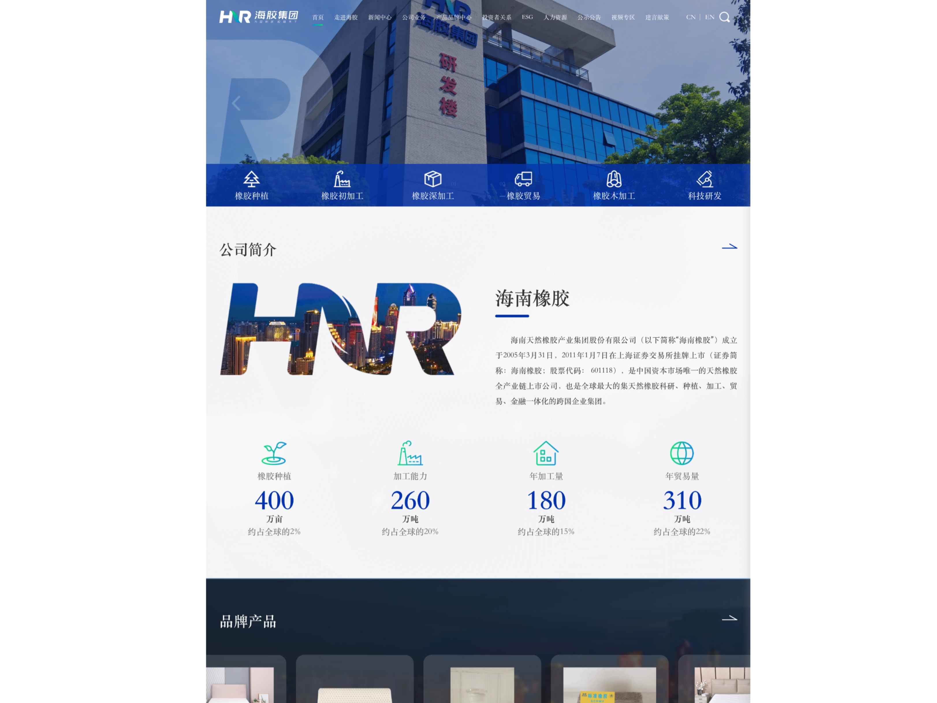 近日,海南天然橡膠產(chǎn)業(yè)集團股份有限公司(以下簡稱海南橡膠)官網(wǎng)升級上線。新版官網(wǎng)界面風(fēng)格更為簡潔清新,各項功能更加清晰、便捷,并新增了英文版閱讀體驗,推動企業(yè)形象提升及品牌建設(shè)工作,擴大品牌影響力。全新升級的海南橡膠官網(wǎng)(http:wwwhirubcn)以純白和深藍為主色調(diào),色調(diào)更為明快、清新,以橡膠全產(chǎn)業(yè)鏈為展示思路