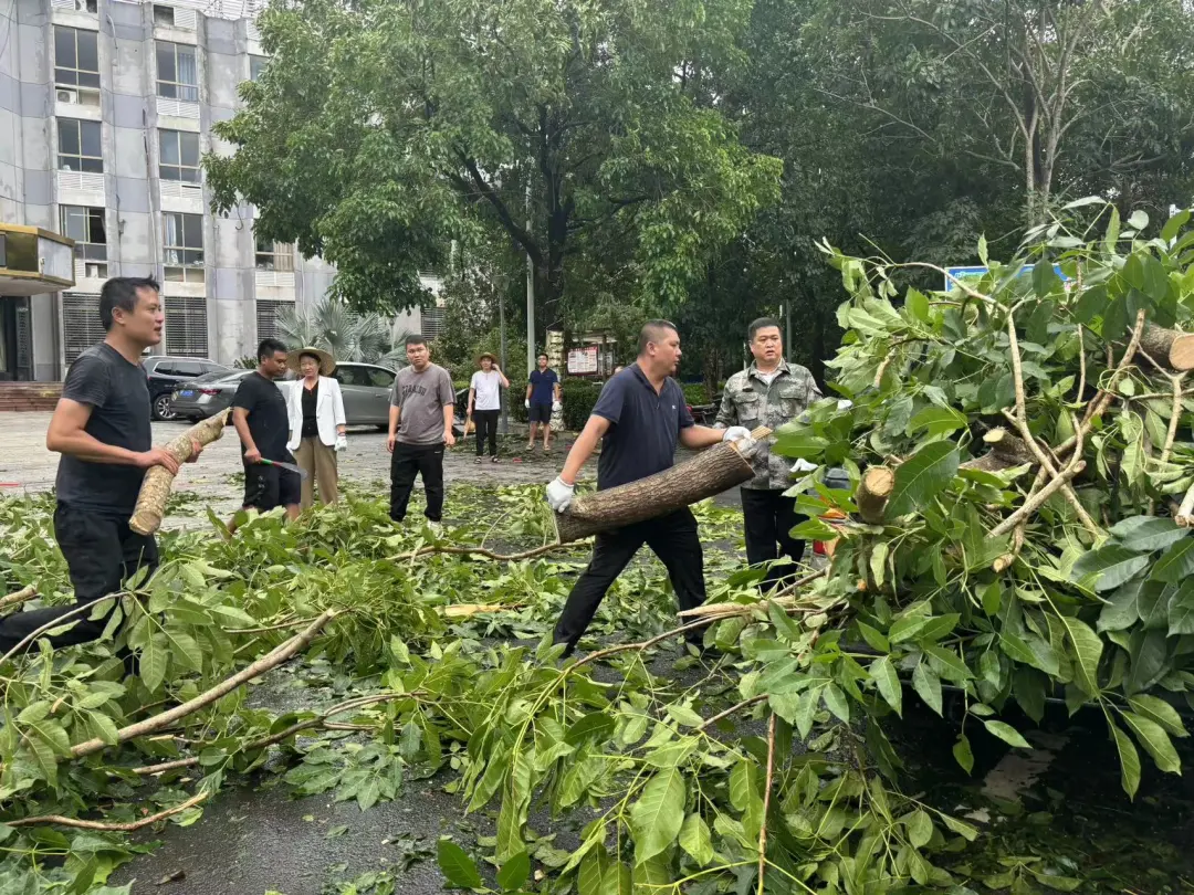 9月7日一大早,儋州市蘭洋鎮(zhèn),海南農(nóng)墾旅游集團(tuán)有限公司和海南橡膠西聯(lián)分公司組織黨員干部在路面上,移走倒伏的大樹,清理斷枝殘葉。